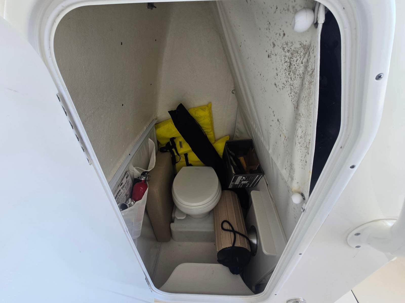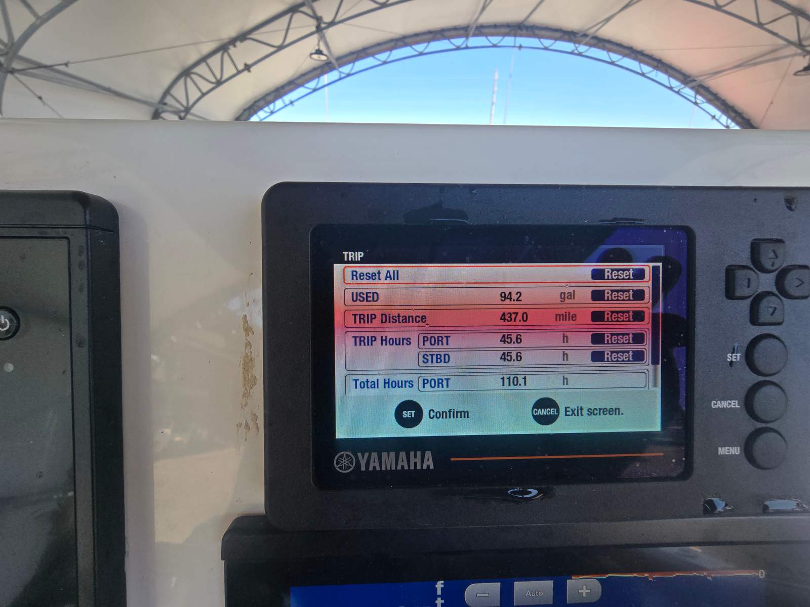 This very clean 2020 KeyWest 263 FS has many amenities such as side step dive door with an integrated ladder, forward seating with removable backrest in a full width rear bench seat, very large dual live wells located in the stern. Also has dual large in floor fish boxes. This is powered by twin Yamaha 200s with about 110 hours.