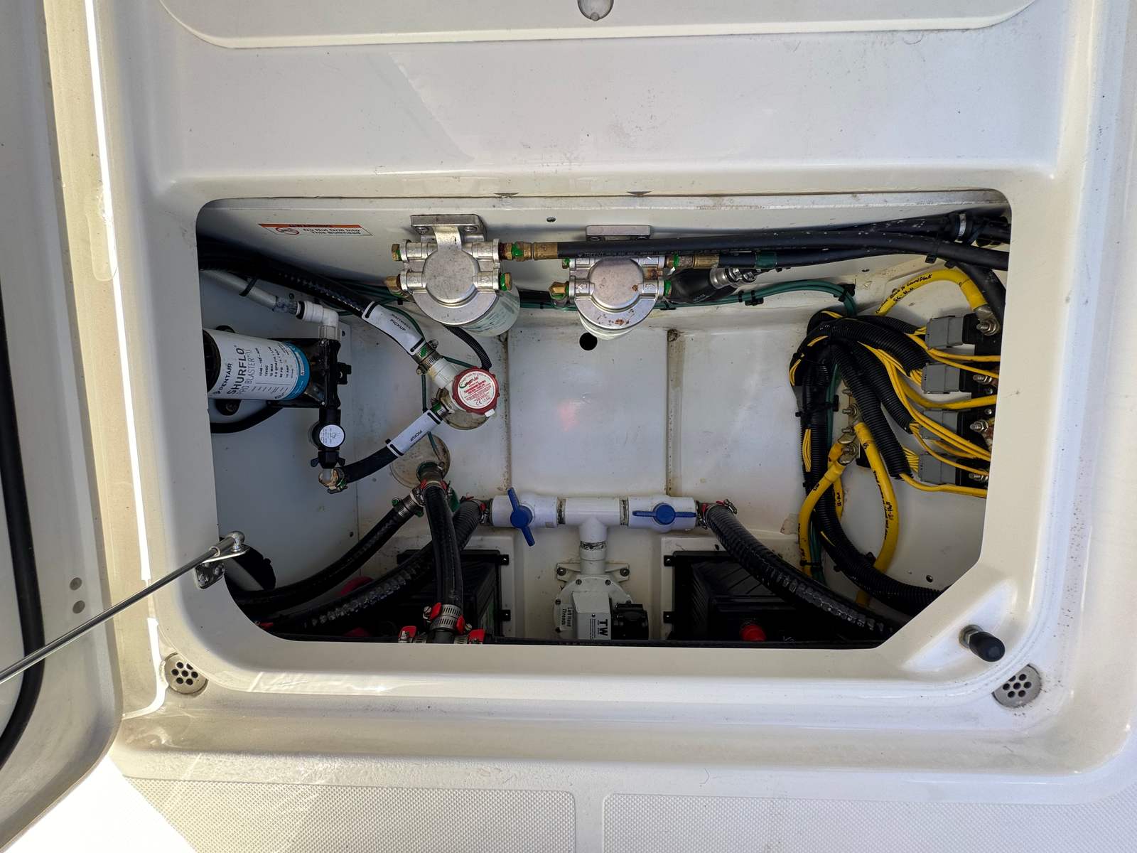 - Fish Boxes (28 gallons each), In-Floor, Insulated and Diaphragm Pump with Overboard Discharge (Port and Starboard)